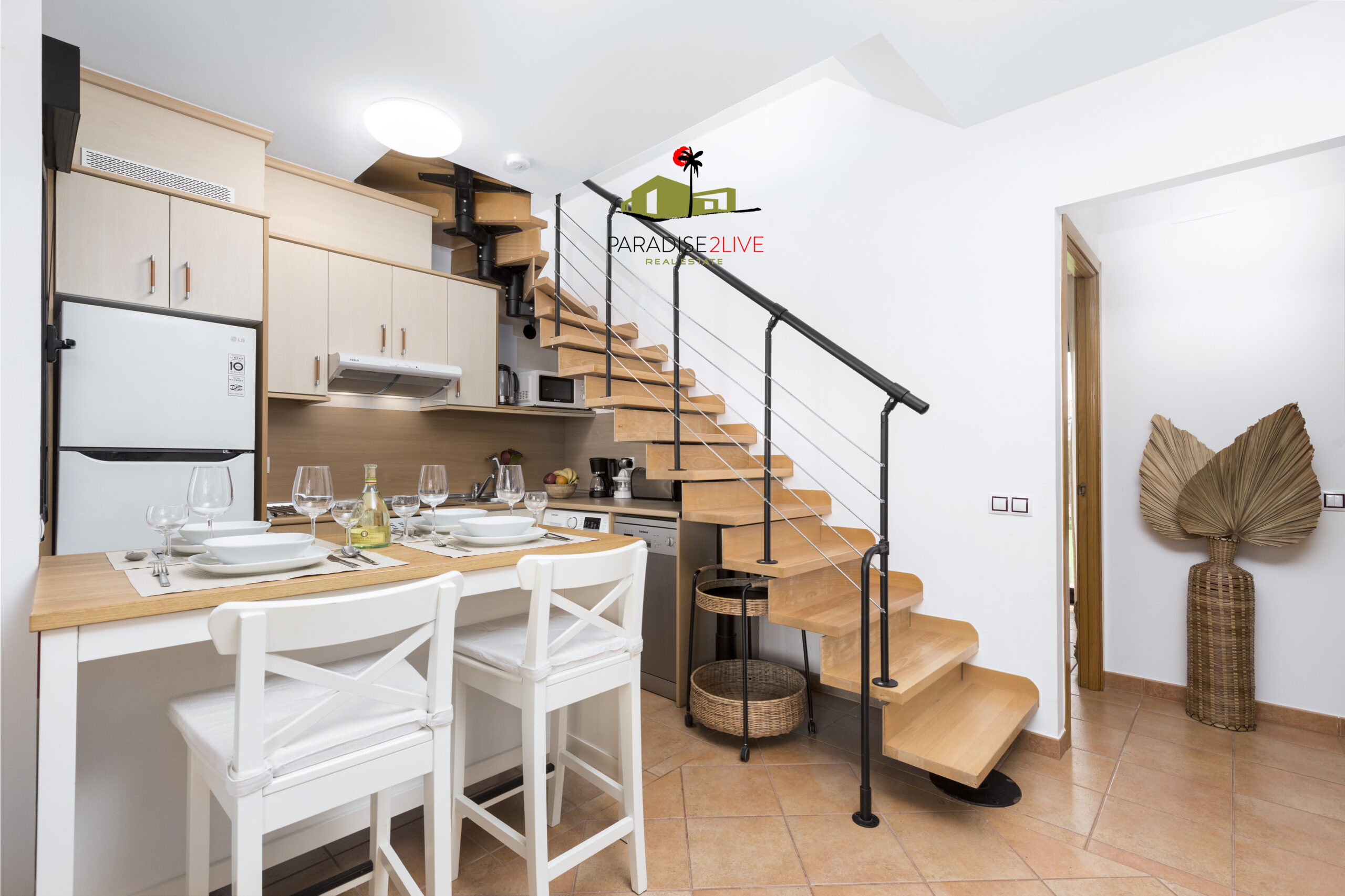 rez-de-chaussée comprend un salon-salle à manger avec une cuisine ouverte